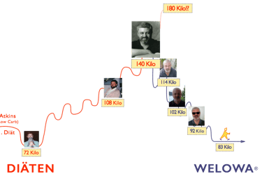 Und ich verrate ihnen, warum Sie mit "Wundermittelchen" – egal wie die heissen – langfristig(!!)* kaum abnehmen können, aber leicht krank werden. Aus 50 jähriger Erfahrung weiss ich, dass nur HALTEN zählt – und nicht Abnehmen. Aus meiner WELOWA Methode könnten Sie ein ehrliches Milliarden Business machen ...
