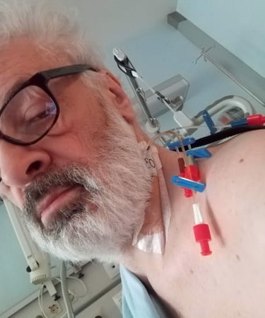 Die Spätfolgen meiner Heisshunger-Exzesse haben mir fast das Leben gekostet (s. Bild oben im Spital – nach einer komatösen Ketoazidose. Mit 3 fachem Halskatheder zur künstlicher Ernährung und Medikation.